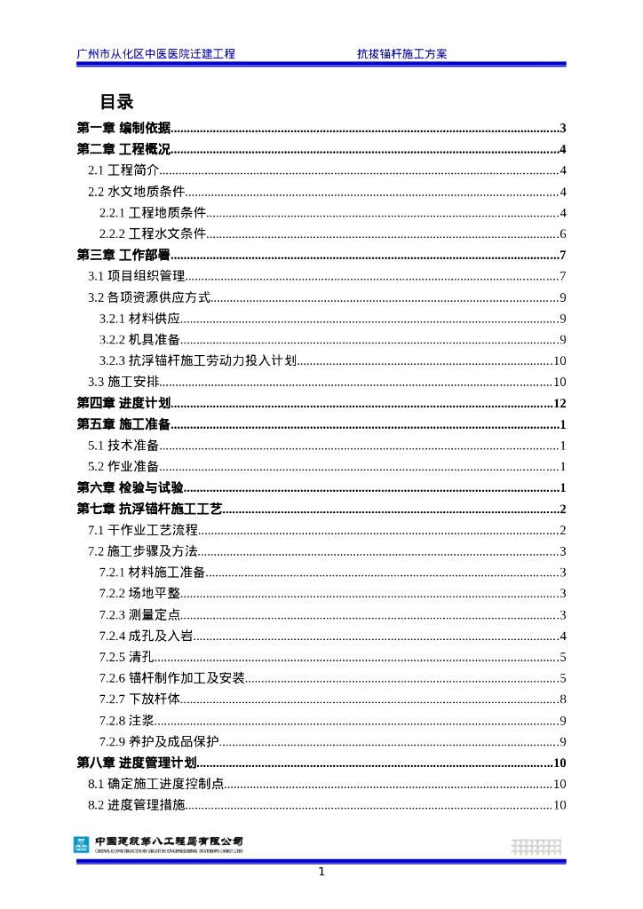 中医医院迁建工程抗浮锚杆施工方案.doc