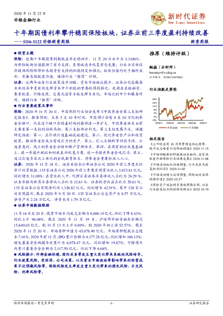 新时代证券:非银投资周报:十年期国债利率攀升稳固保险板块,证券业前三季度盈利持续改善.pdf