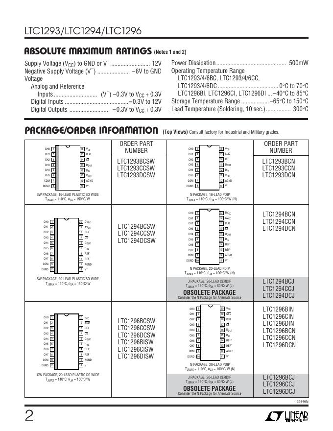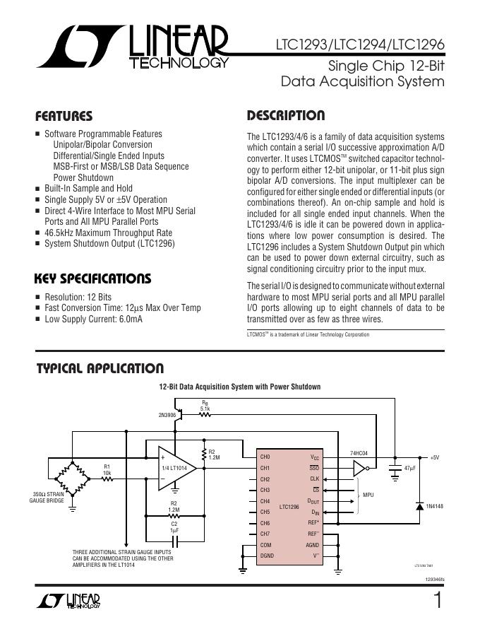 LINEAR TECHNOLOGY LTC1293/LTC1294/LTC1296 129346fs Single Chip 12-Bit Data Acquisition System 数据手册.pdf
