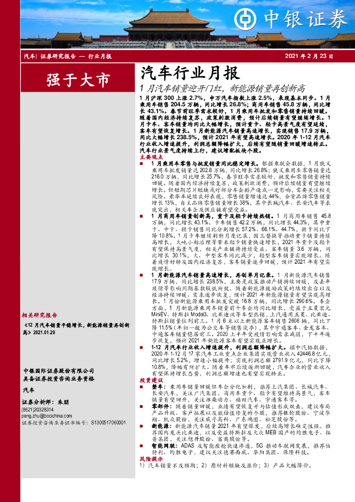 中银证券:汽车行业月报:1月汽车销量迎开门红,新能源销量再创新高.pdf