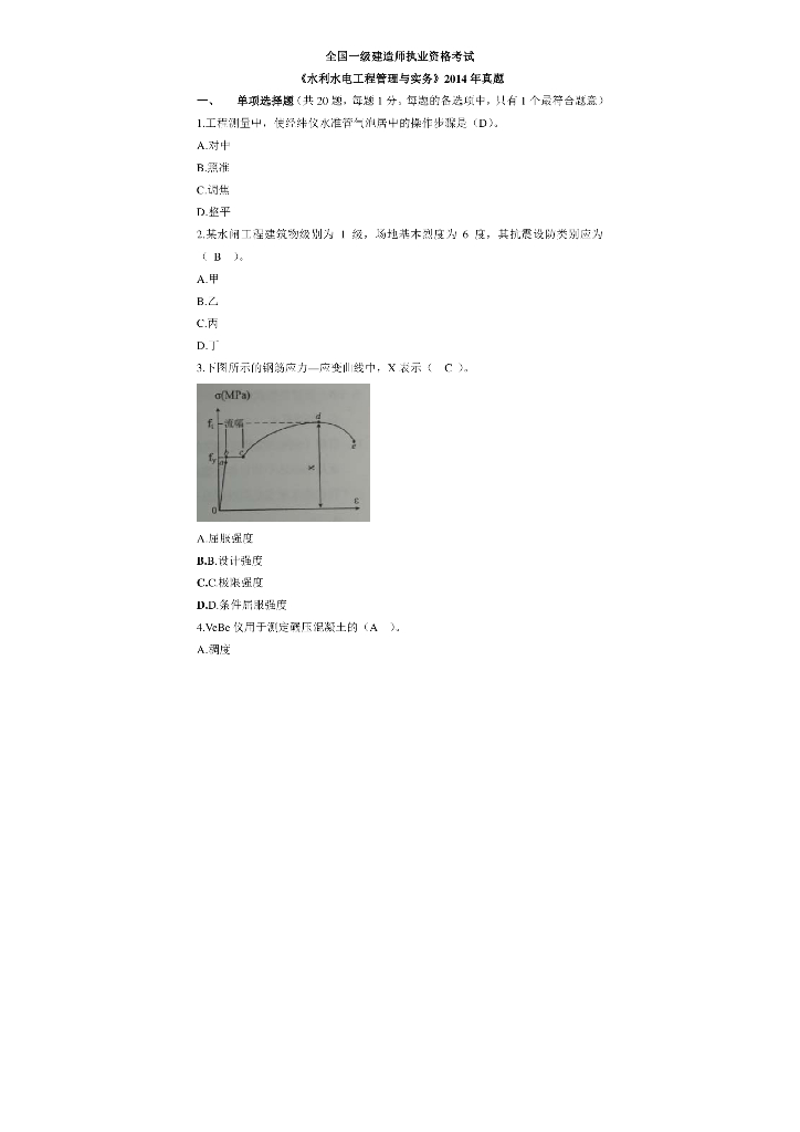 2014年一级建造师水利水电实务真题(附答案).pdf