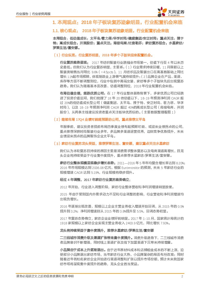 天风证券:纺织服装:2018子板块复苏迹象明显,行业配置机会来临.pdf