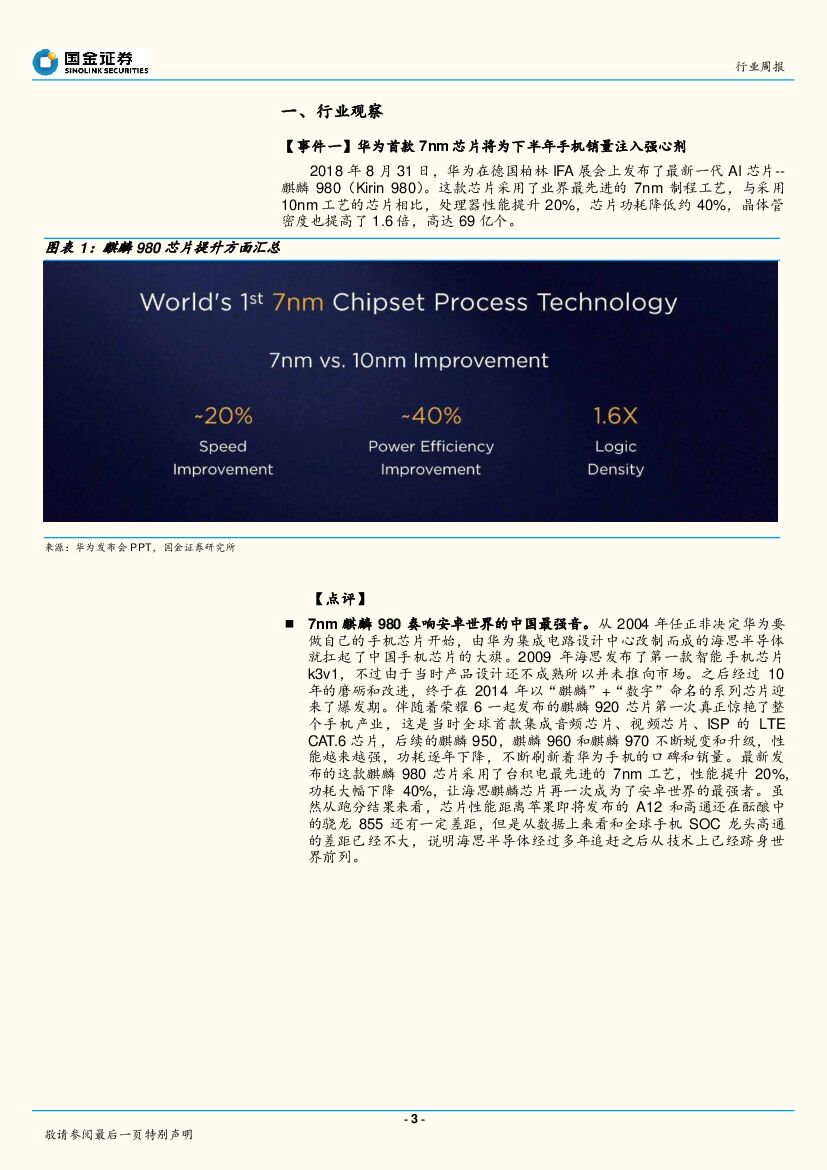 国金证券:半导体行业研究周报:麒麟980芯片提升华为手机销售动能,国内封测大厂纷纷布局5G时代.pdf