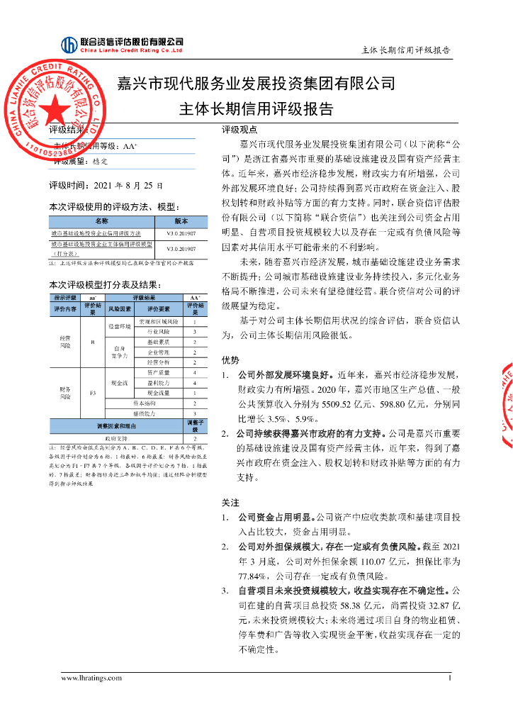 联合资信:嘉兴市现代服务业发展投资集团有限公司主体信用评级报告.pdf