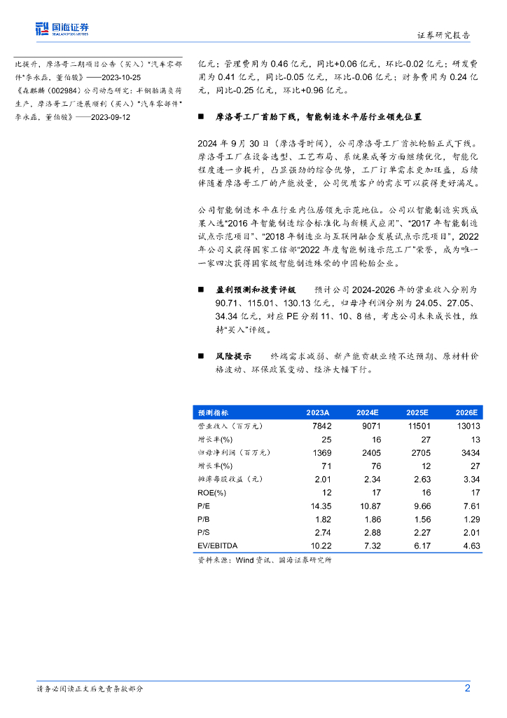国海证券:森麒麟(002984)-2024年三季报点评:摩洛哥工厂首胎下线,Q3净利润同环比提升.pdf