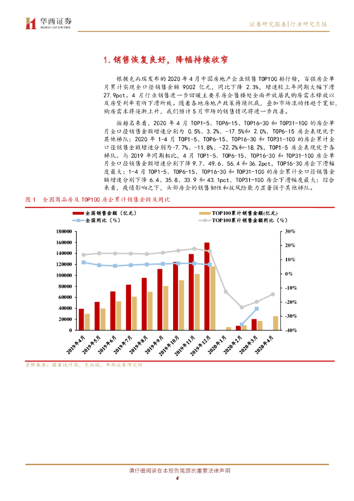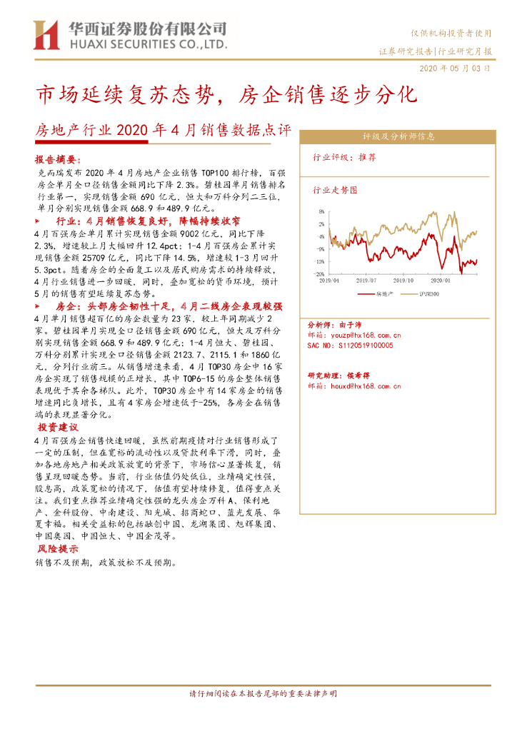 华西证券:房地产行业2020年4月销售数据点评:市场延续复苏态势,房企销售逐步分化.pdf
