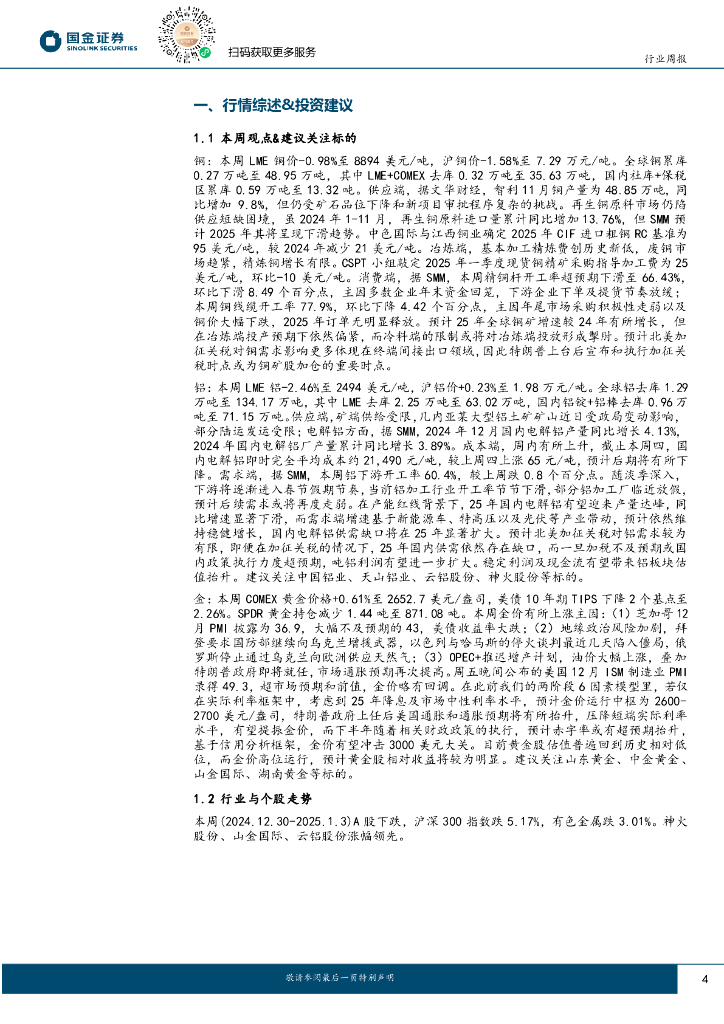 国金证券:大宗&贵金属周报:推荐关注估值相对低位的黄金股.pdf