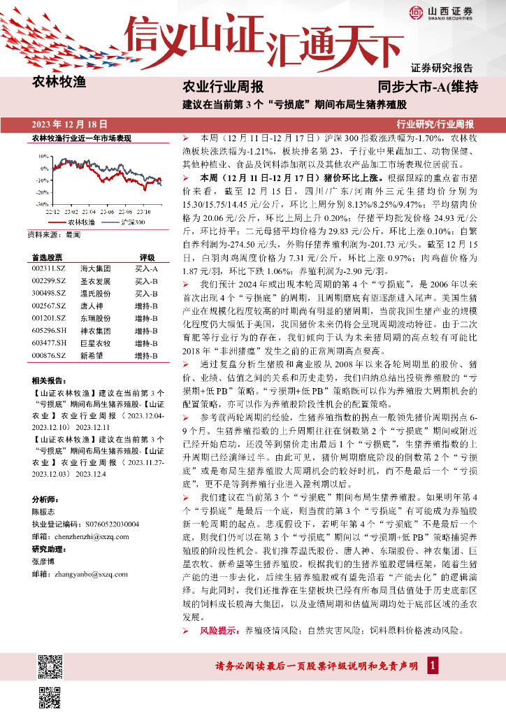 山西证券:农业行业周报:建议在当前第3个“亏损底”期间布局生猪养殖股.pdf