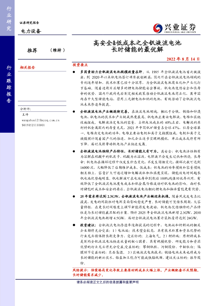 兴业证券:高安全&低成本之全钒液流电池,长时储能的最优解.pdf