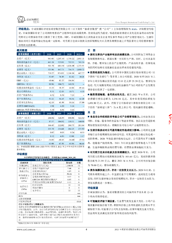 中诚信:新希望集团有限公司主体信用评级及跟踪评级安排.pdf