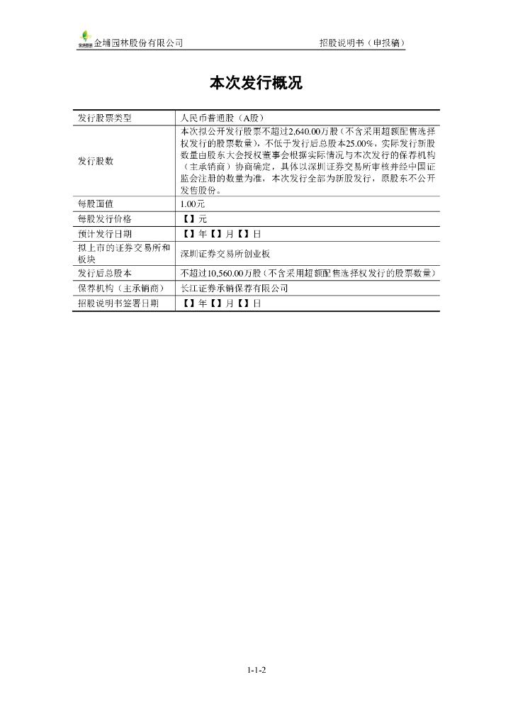 金埔园林股份有限公司深交所创业板IPO上市招股说明书.pdf