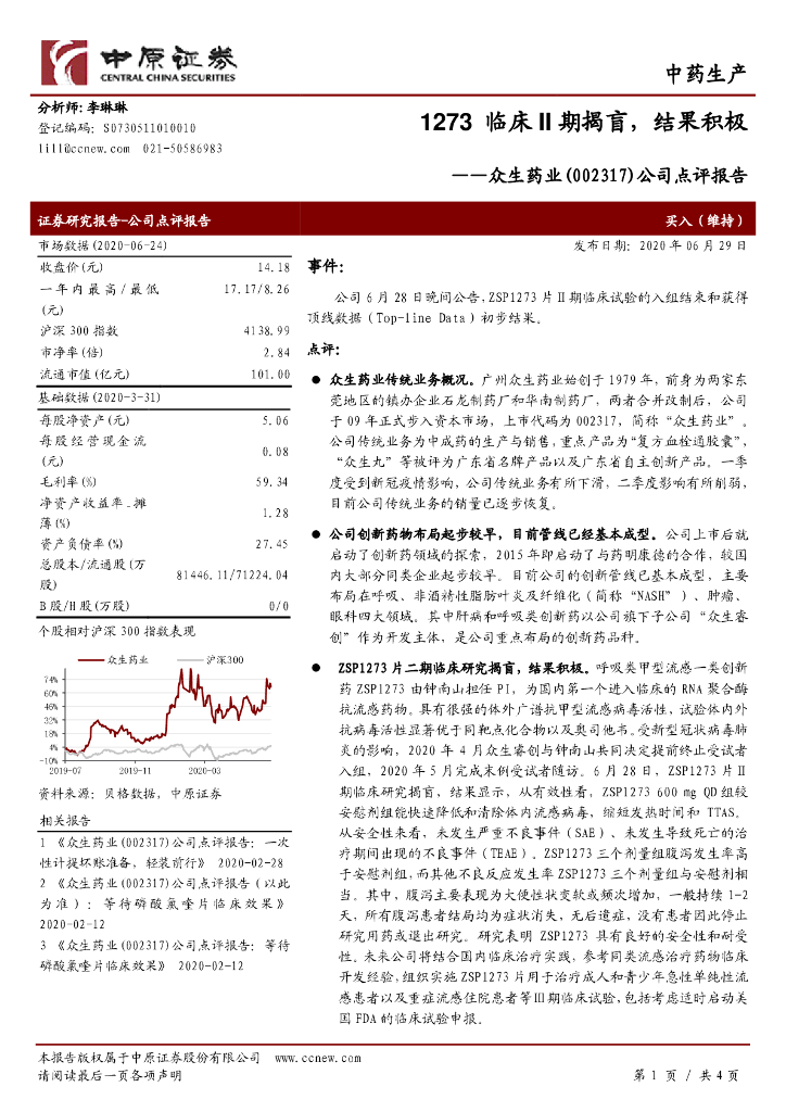 中原证券:众生药业(002317)-公司点评报告:1273临床II期揭盲,结果积极.pdf