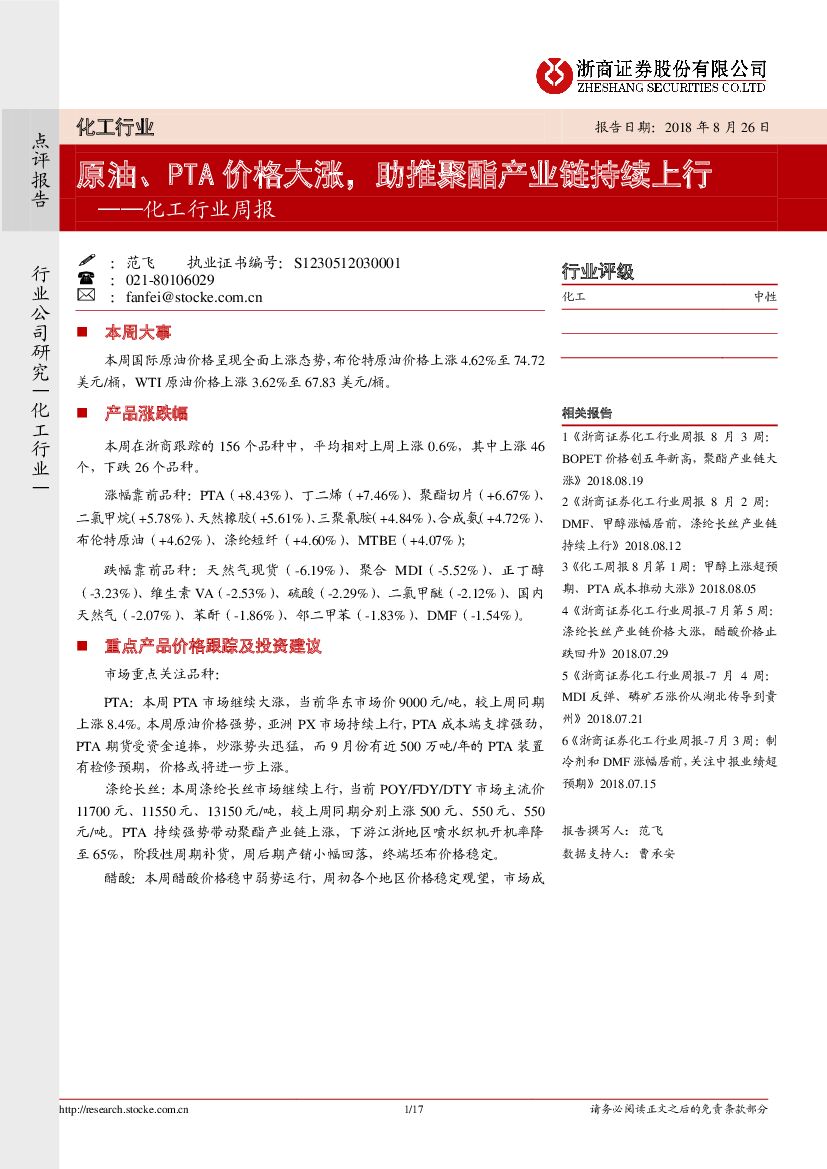 浙商证券:化工行业周报:原油、PTA价格大涨,助推聚酯产业链持续上行.pdf
