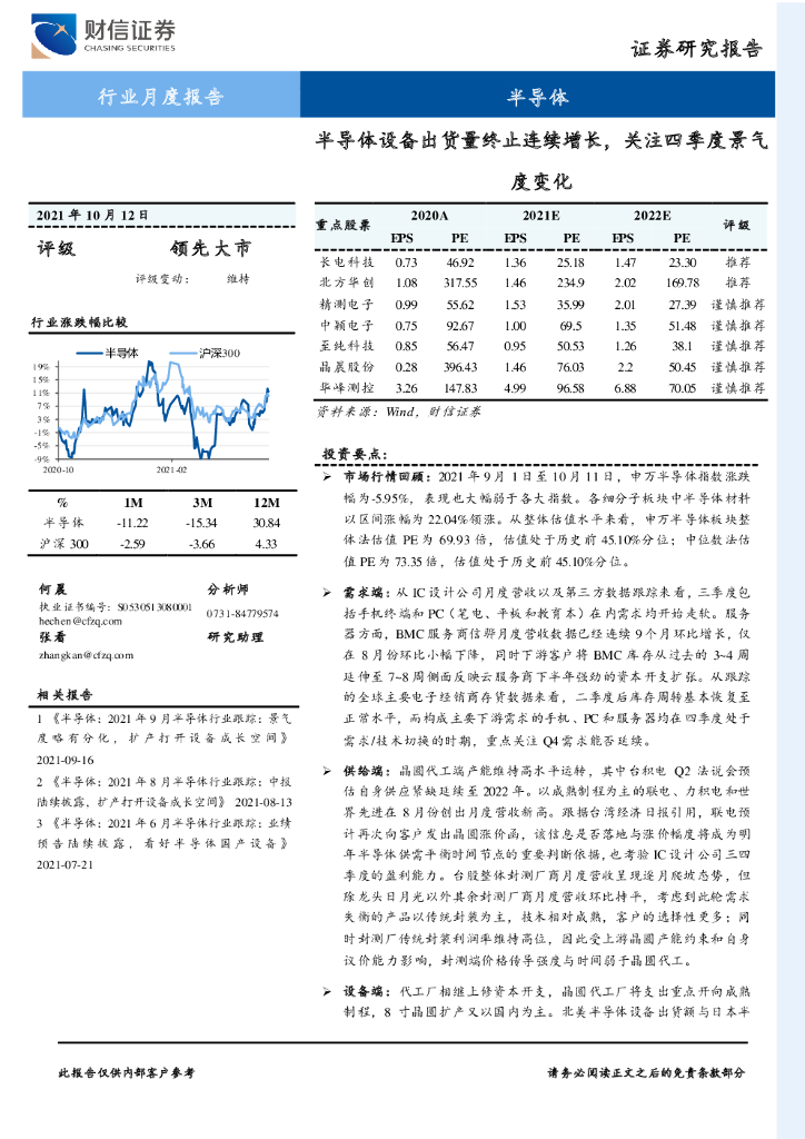 财信证券:半导体行业月度报告:半导体设备出货量终止连续增长,关注四季度景气度变化.pdf