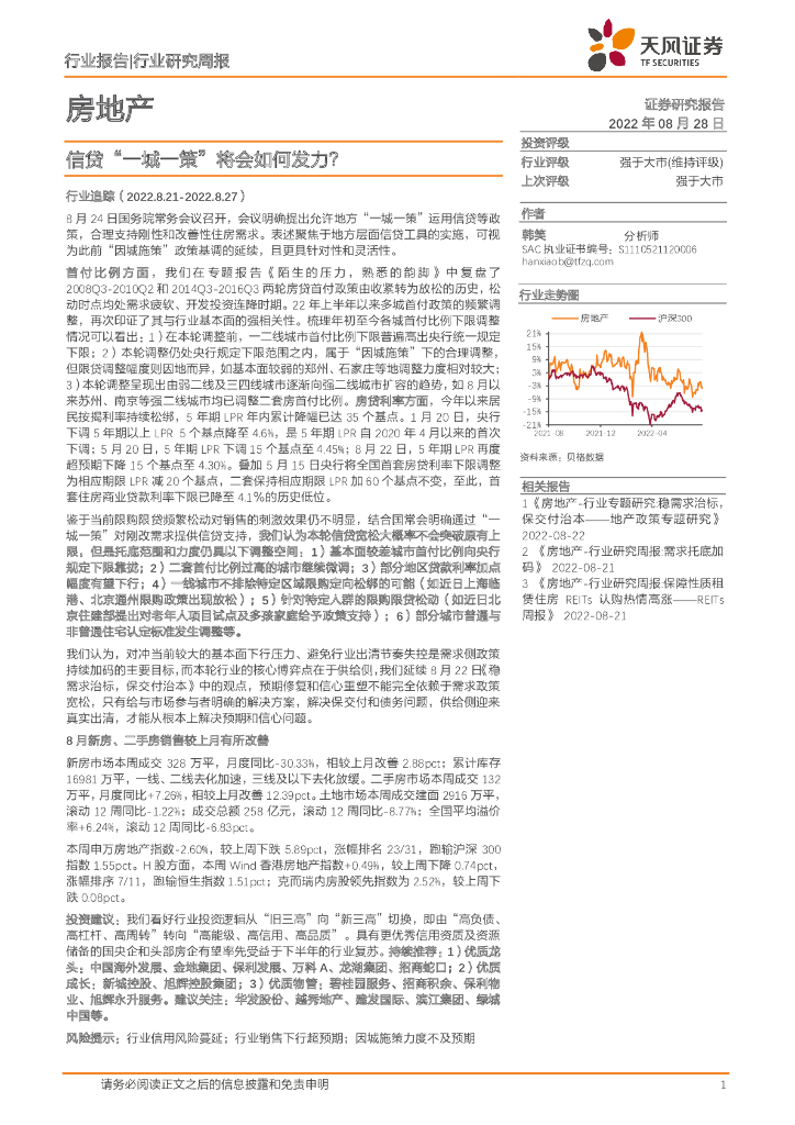 天风证券:房地产行业研究周报:信贷“一城一策”将会如何发力?.pdf