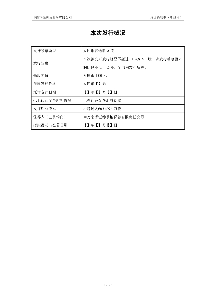 中自环保科技股份有限公司上交所科创板IPO上市招股说明书.pdf