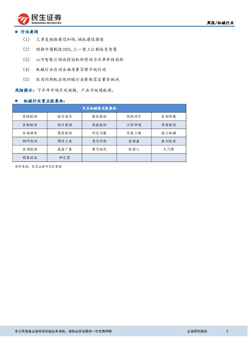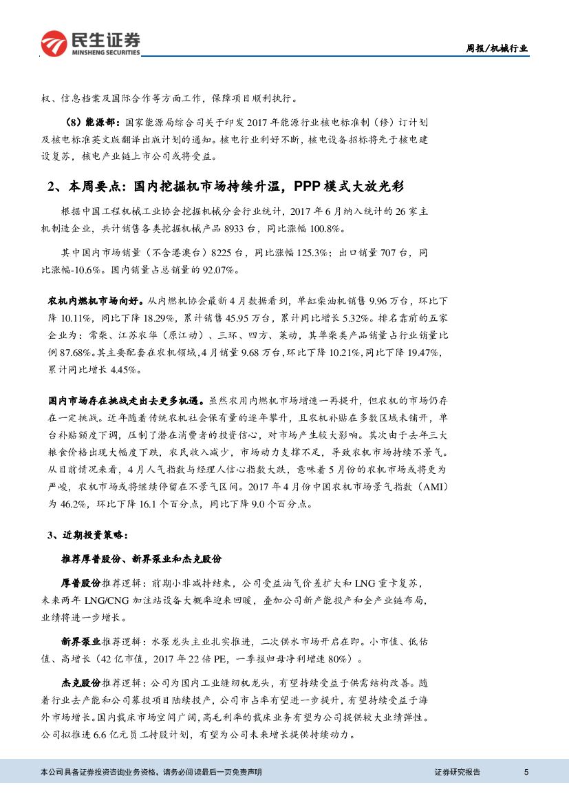 民生证券:机械行业周报:国内挖掘机市场持续升温,PPP模式大放光彩.pdf