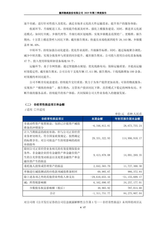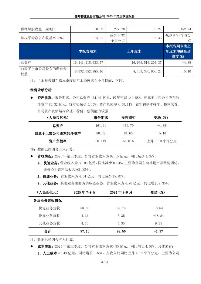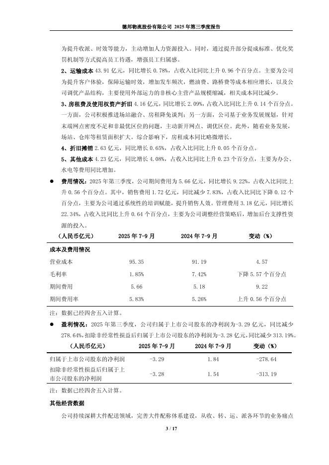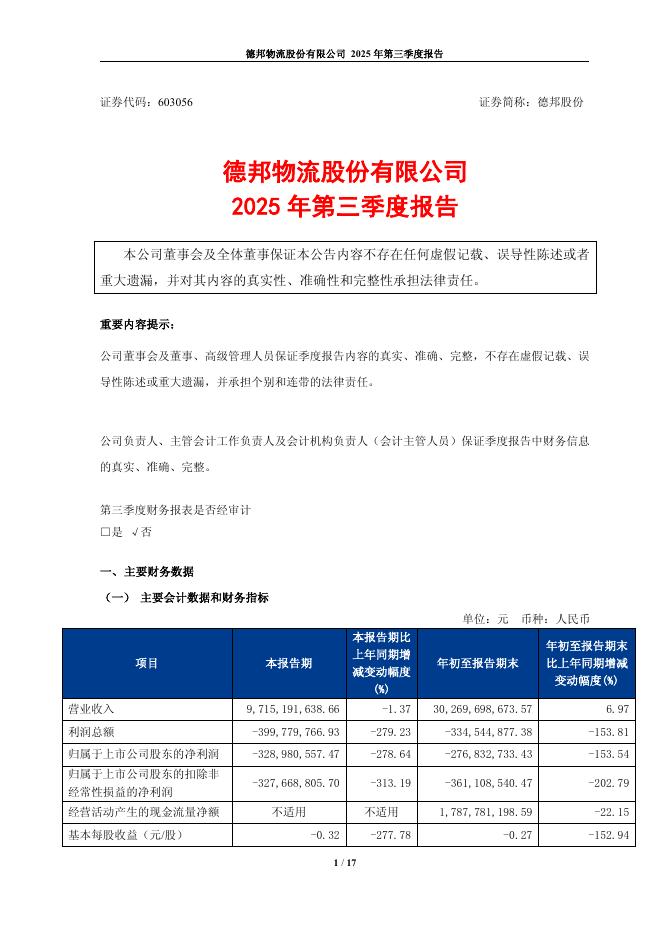 603056-德邦股份:德邦物流股份有限公司2025年第三季度报告.pdf