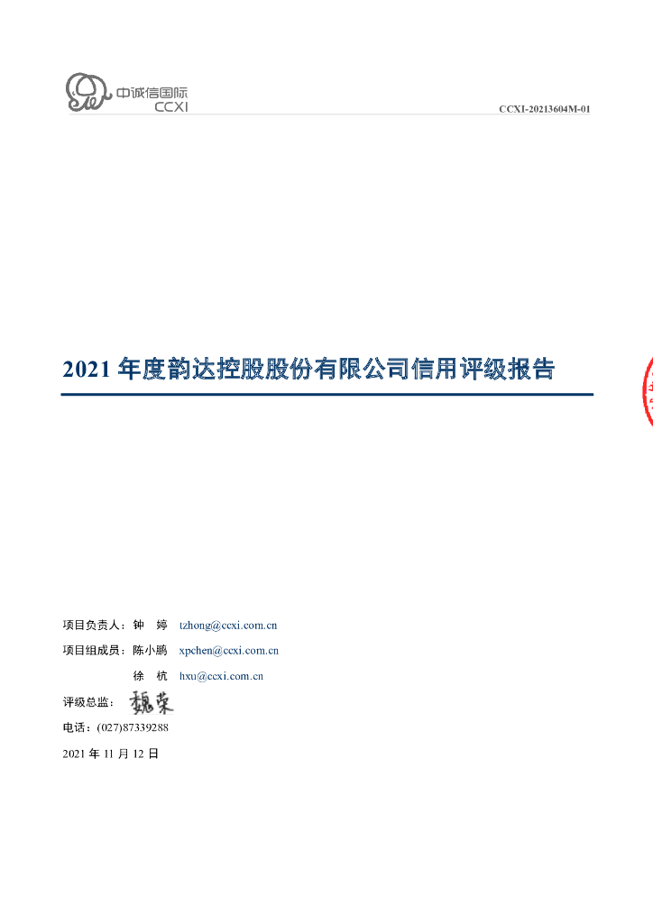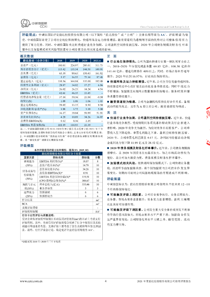 中诚信:2021年度韵达控股股份有限公司信用评级报告.pdf