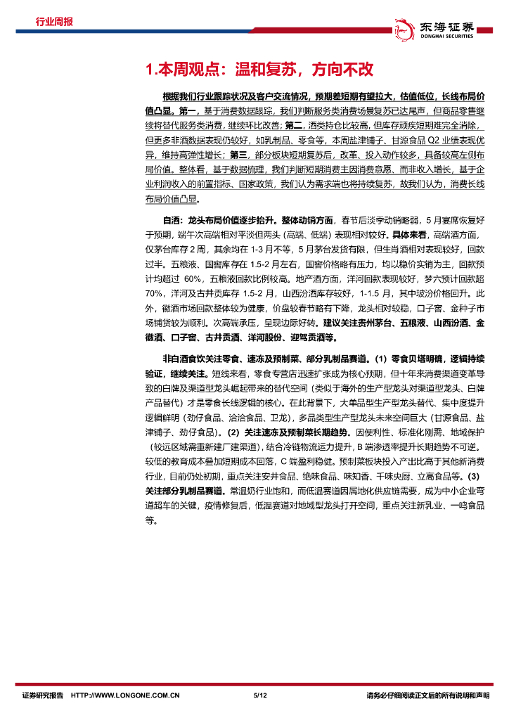 东海证券:食品饮料行业周报:温和复苏,方向不改.pdf