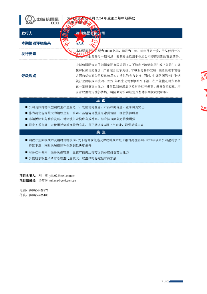 中诚信:河钢集团有限公司2024年度第二期中期票据信用评级报告.pdf