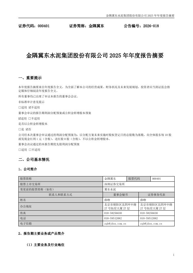 000401-金隅冀东:2025年年度报告摘要.pdf
