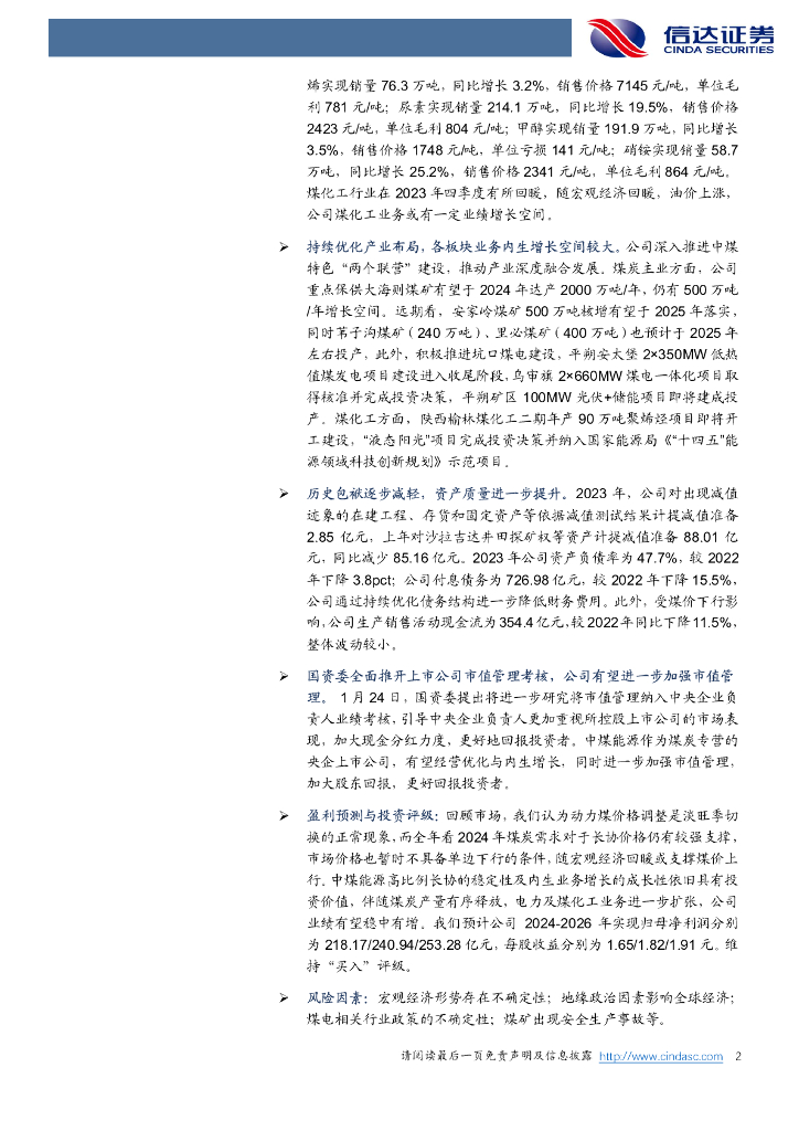 信达证券:中煤能源:量增价稳彰显业绩韧性,产业布局仍具成长空间.pdf
