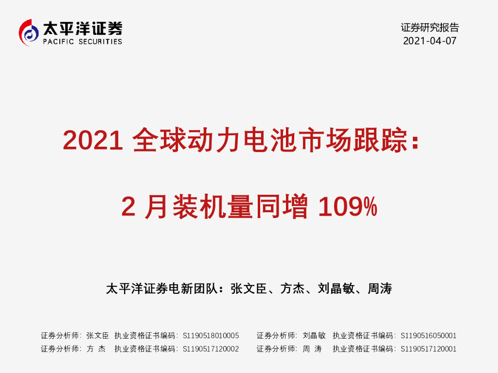 太平洋证券:2021全球动力电池市场跟踪:2月装机量同增109%.pdf