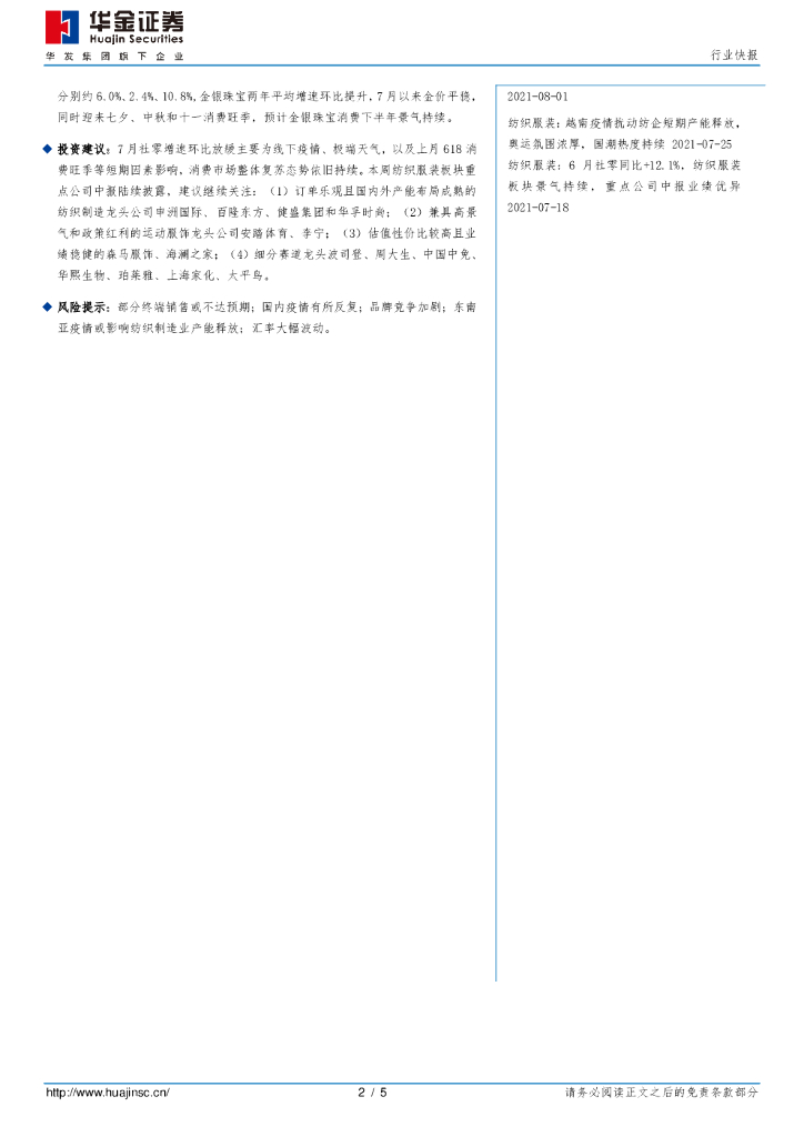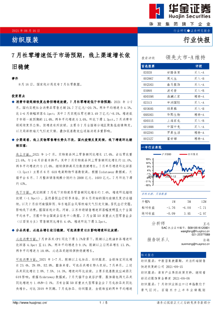 华金证券:纺织服装行业快报:7月社零增速低于市场预期,线上渠道增长依旧稳健.pdf