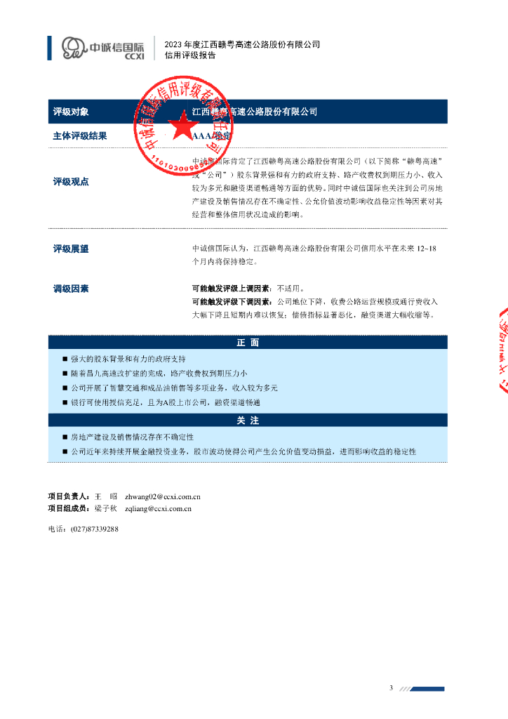 中诚信:2023年度江西赣粤高速公路股份有限公司信用评级报告.pdf