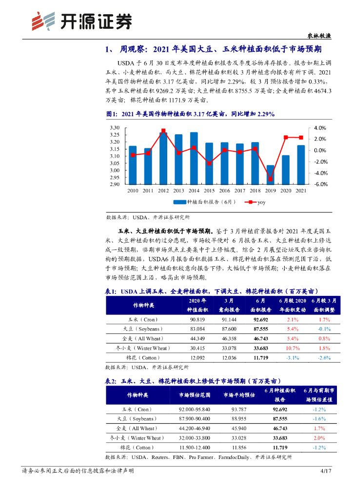 开源证券:农林牧渔行业周报:2021年美国大豆、玉米种植面积低于市场预期.pdf