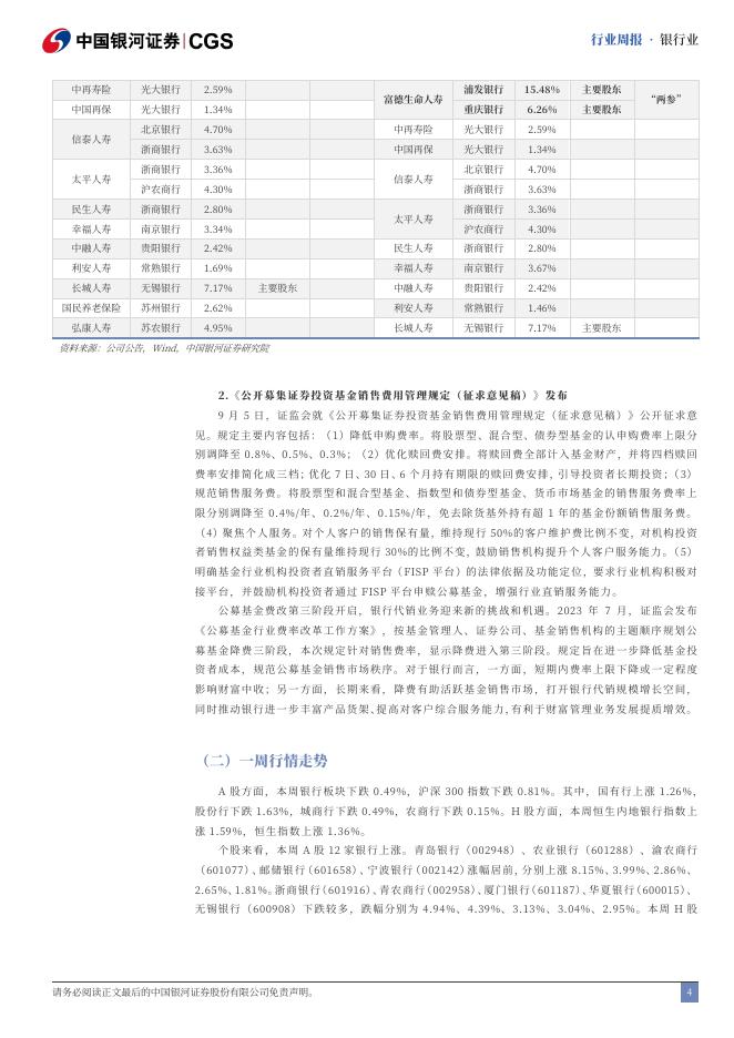 中国银河:银行业周报:险资布局银行力度不减,公募基金降费开启新阶段.pdf