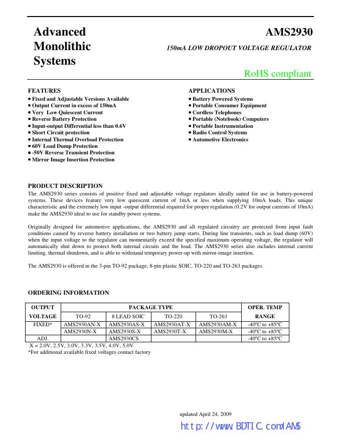 AMS2930 150mA LOW DROPOUT VOLTAGE REGULATOR 数据手册.pdf