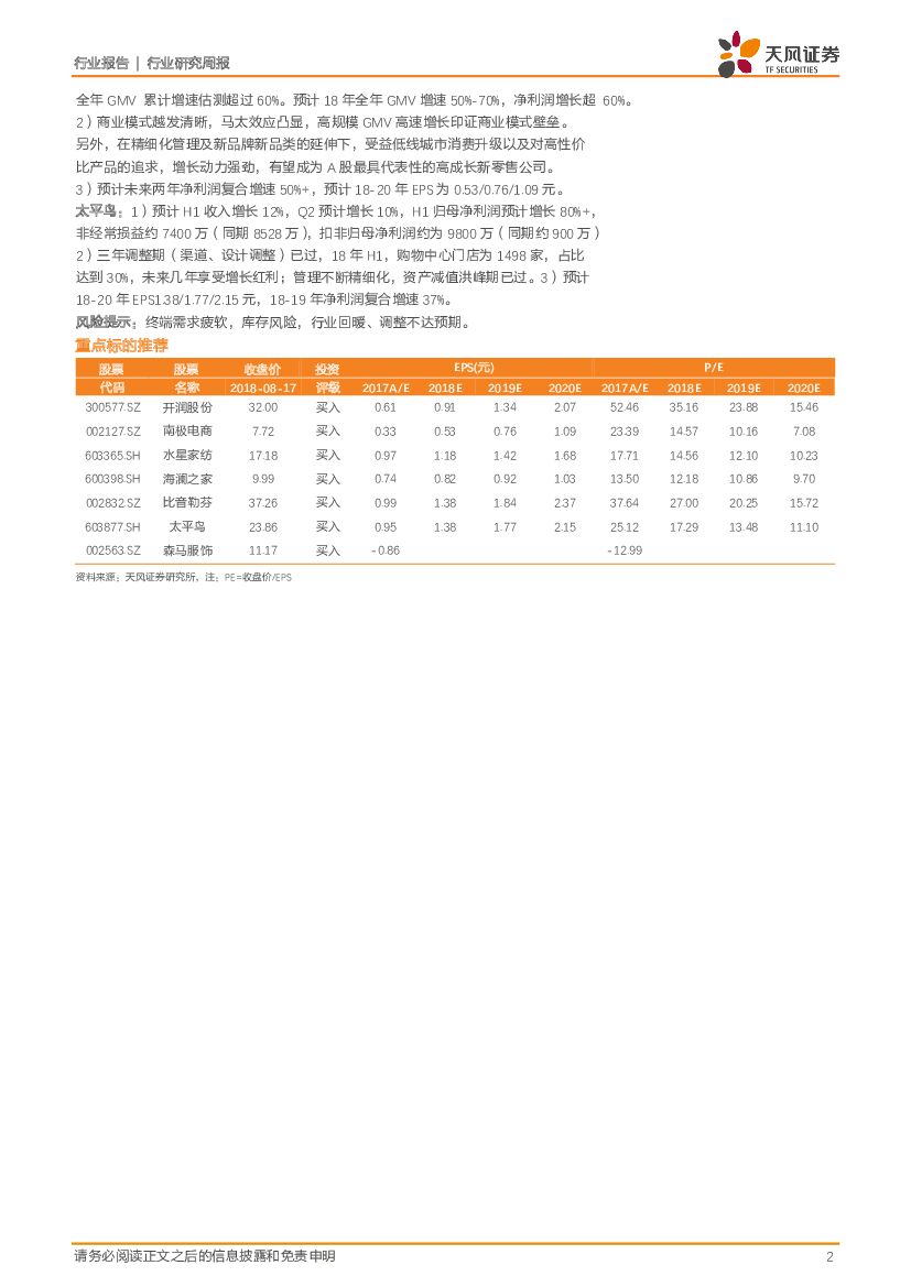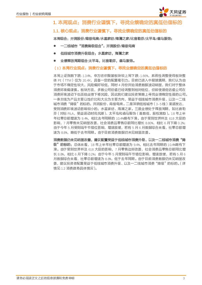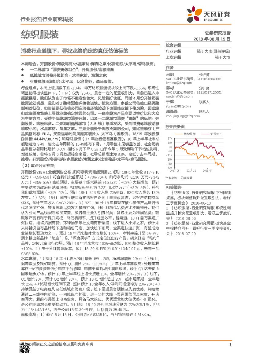 天风证券:纺织服装行业研究周报:消费行业谨慎下,寻找业绩确定的真低估值标的.pdf