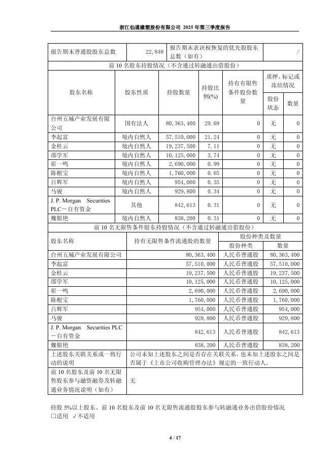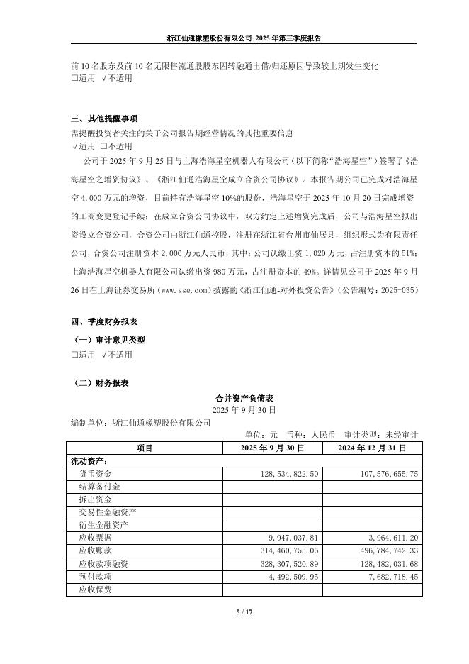 603239-浙江仙通:浙江仙通-2025年第三季度报告.pdf