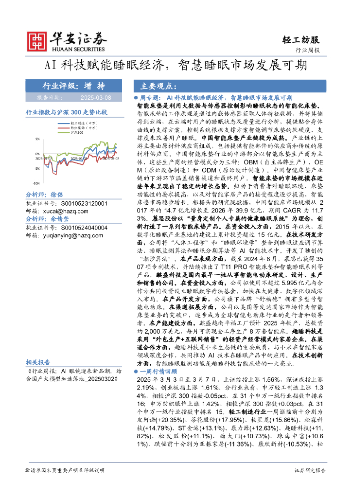 华安证券:轻工纺服行业周报:AI科技赋能睡眠经济,智慧睡眠市场发展可期.pdf
