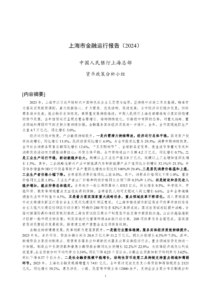 中国人民银行:上海市金融运行报告(2024).pdf