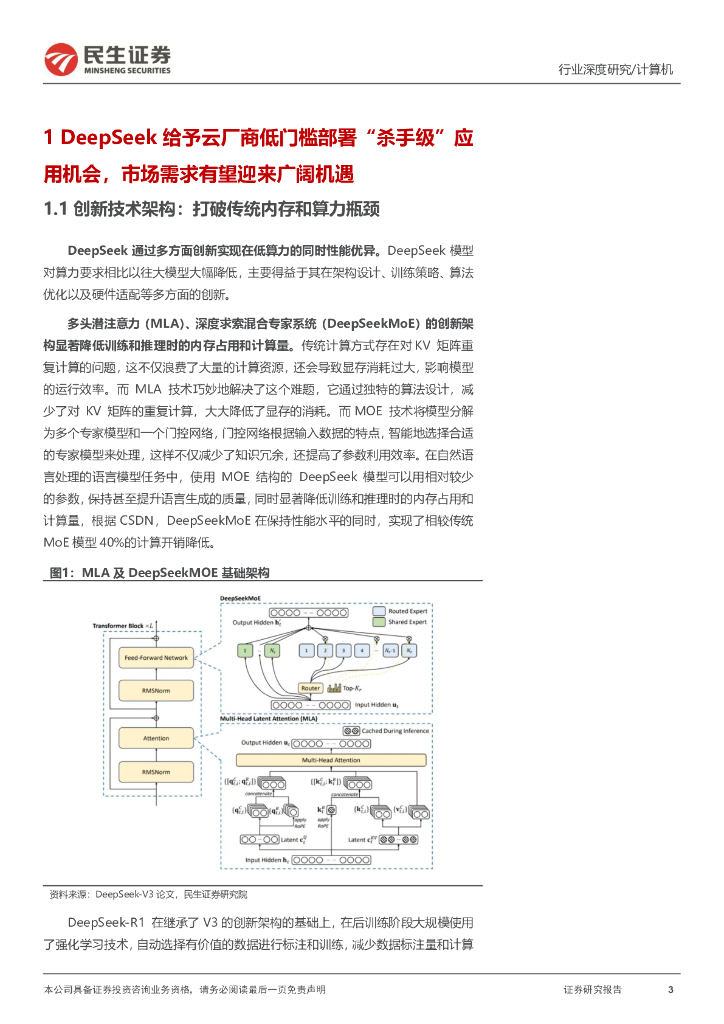 民生证券:计算机行业深度研究:为什么DeepSeek最受益方向是云产业链.pdf