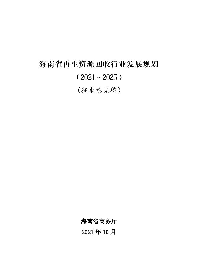 海南省再生资源回收行业发展规划(2021~2025)(征求意见稿).pdf