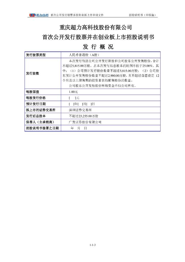 重庆超力高科技股份有限公司深交所创业板IPO上市招股说明书.pdf