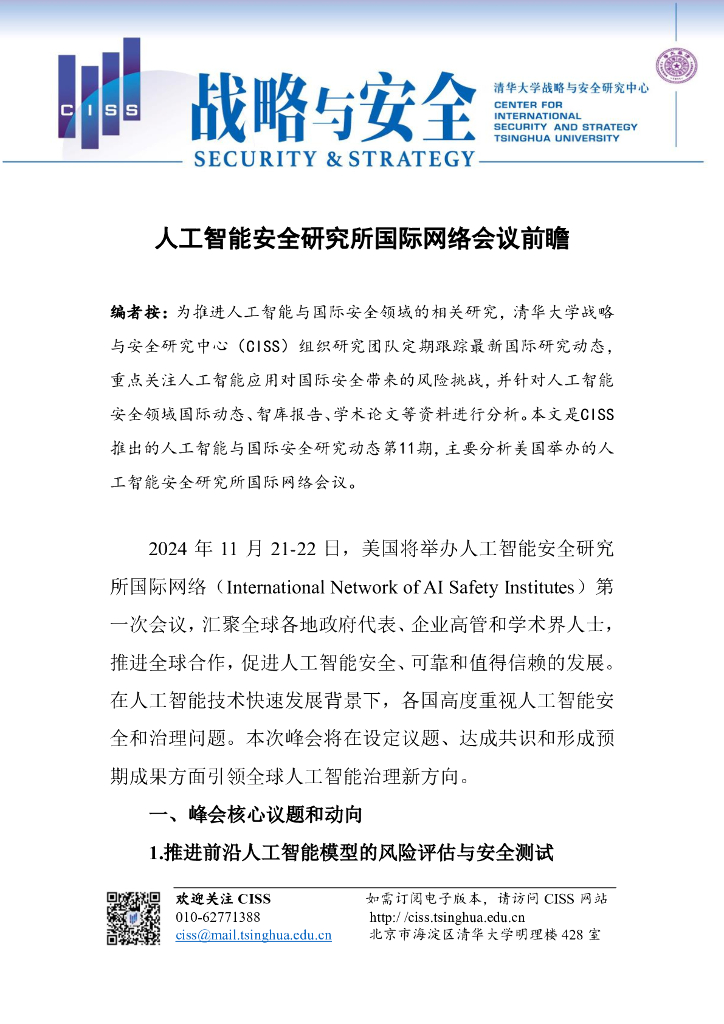 清华大学战略与安全研究中心:人工智能与国际安全研究动态第11期-人工智能安全研究所国际网络会议前瞻.pdf
