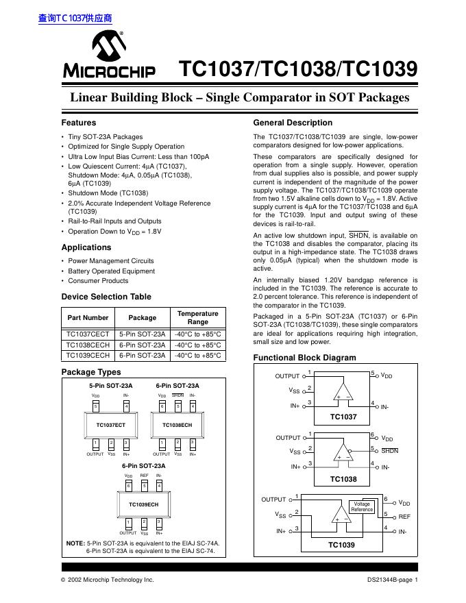 MICROCHIP TC1037/TC1038/TC1039 数据手册.pdf