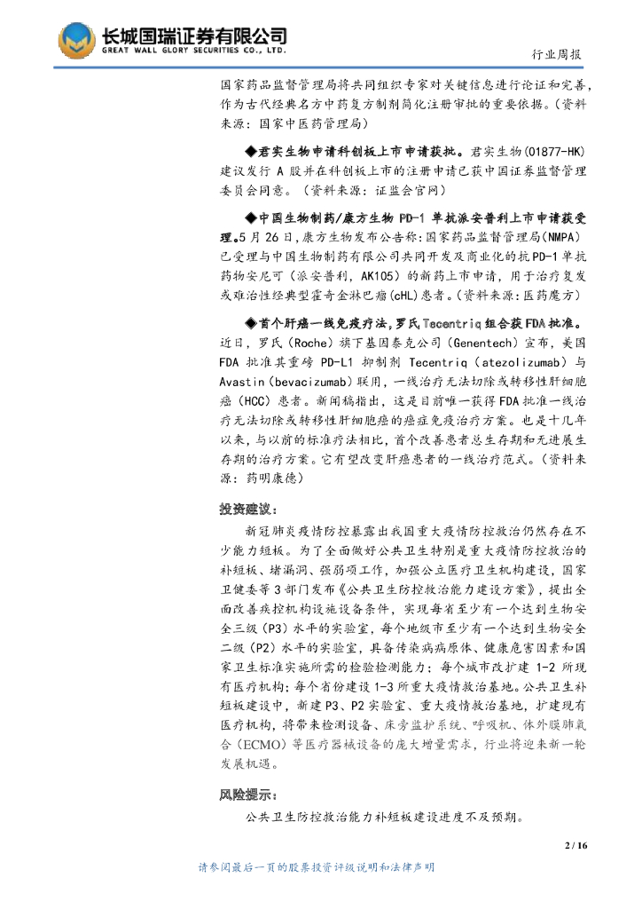 长城国瑞证券:医药生物行业双周报2020年第3期总第10期:公共卫生防控救治补短板,医疗器械迎来新机遇.pdf
