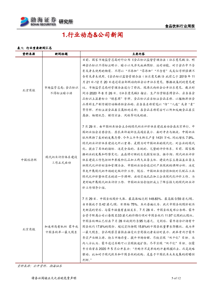 渤海证券:食品饮料行业周报:中报业绩逐渐披露 关注乳制品成长性.pdf