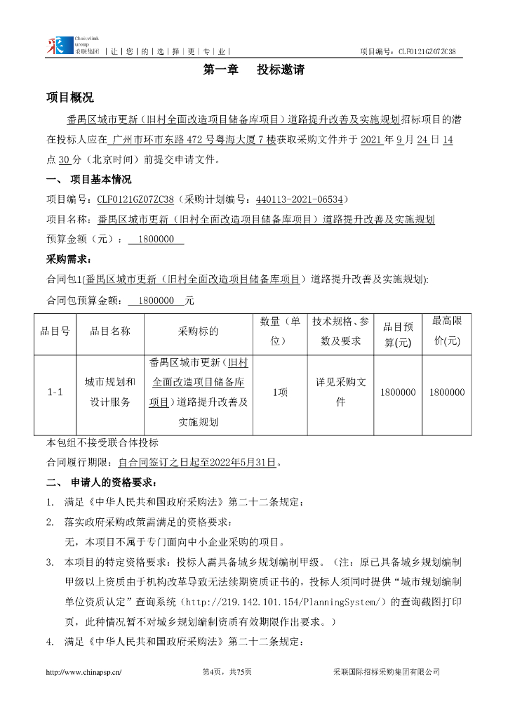 番禺区城市更新(旧村全面改造项目储备库项目)道路提升改善及实施规划招标文件.pdf