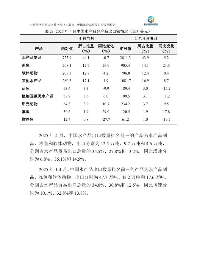 对外经济贸易大学:中国水产品贸易月度监测报告(2025年1-4月).pdf