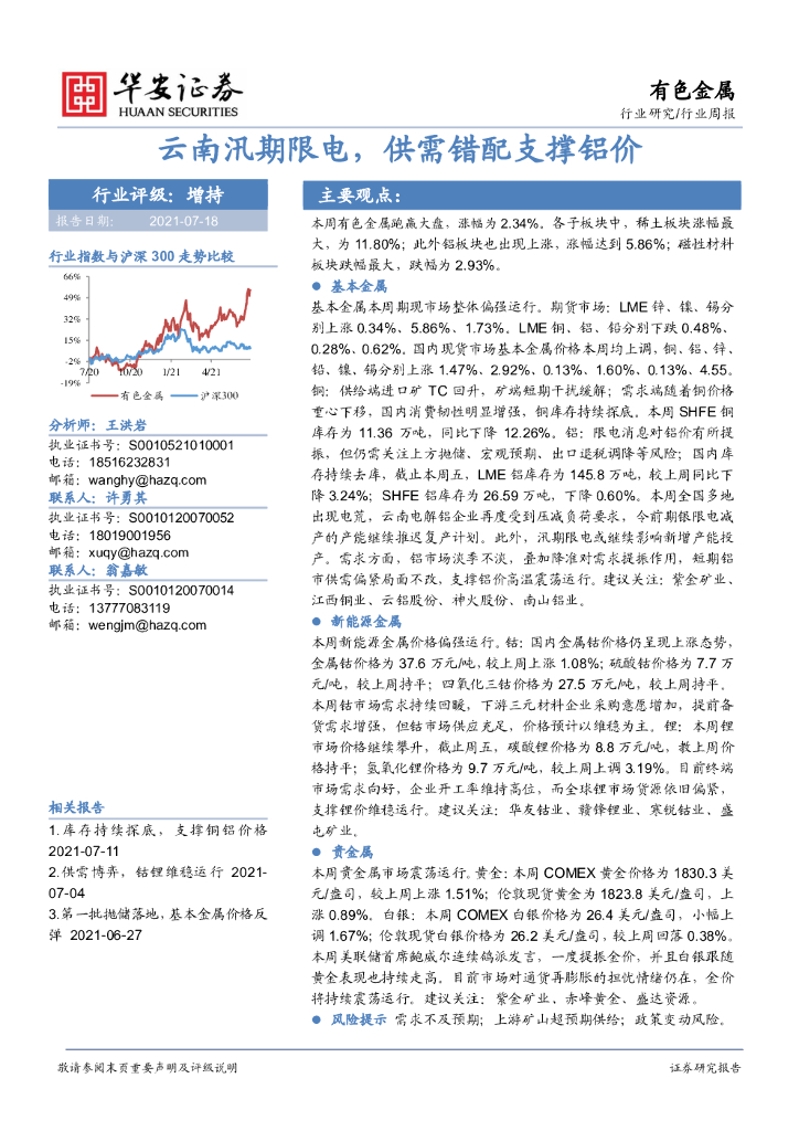 华安证券:有色金属行业周报:云南汛期限电,供需错配支撑铝价.pdf