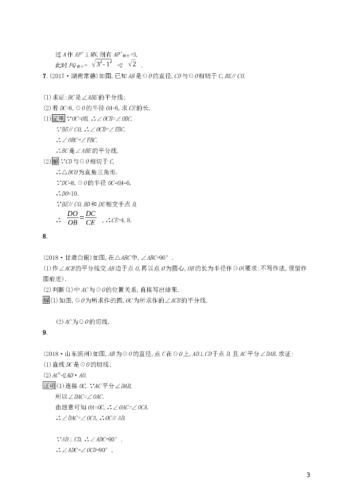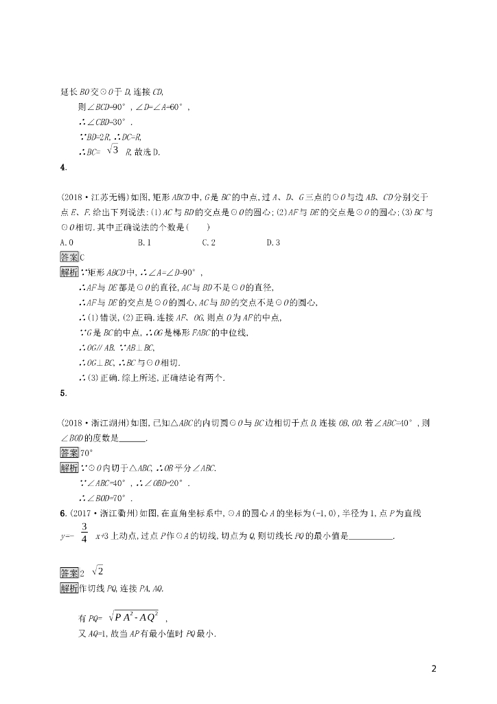课标通用安徽省中考数学总复习第一篇第六单元圆考点强化练23与圆有关的位置关系试题.doc