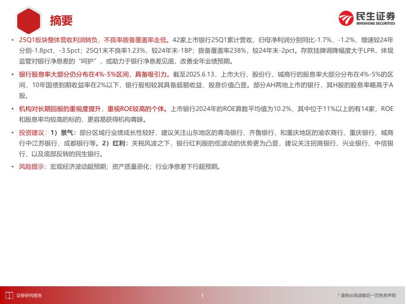 民生证券:银行业2025年中期投资策略:价值重估进行中,股息和ROE并重.pdf