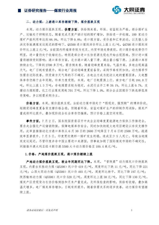 大同证券:煤炭行业周报:电厂煤炭日耗提升,焦煤价格有望企稳.pdf